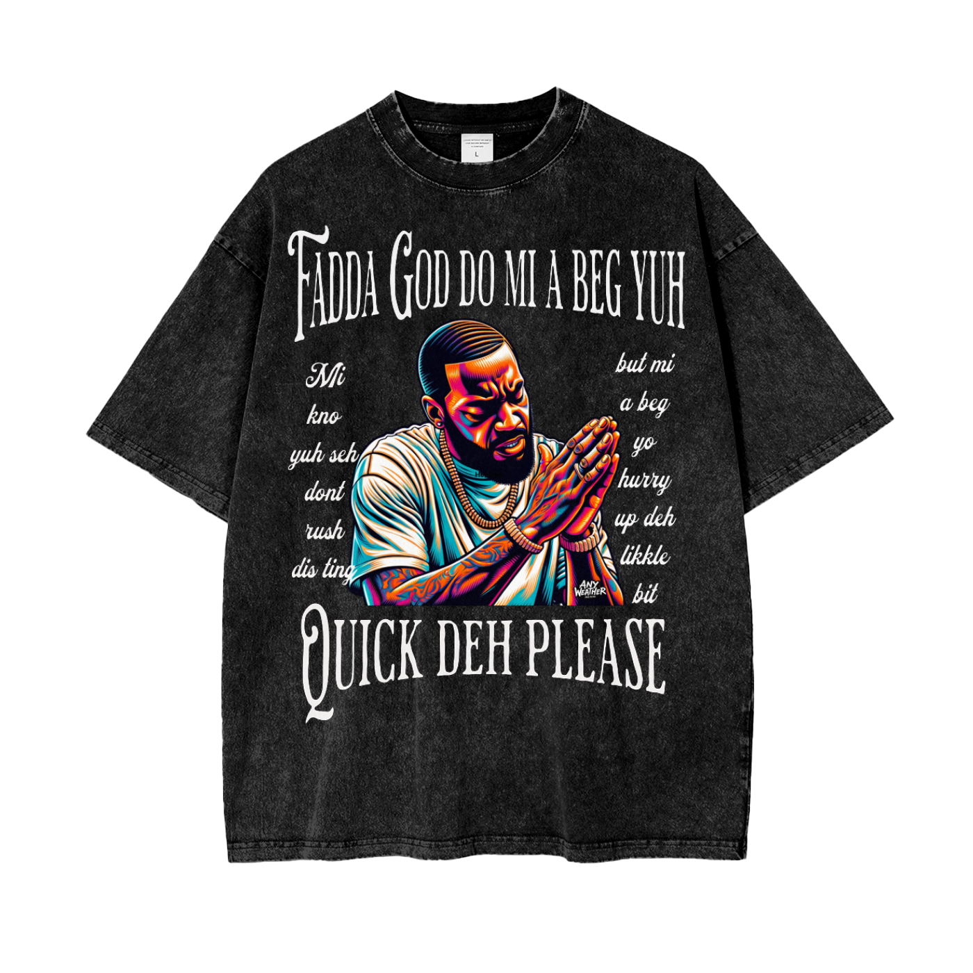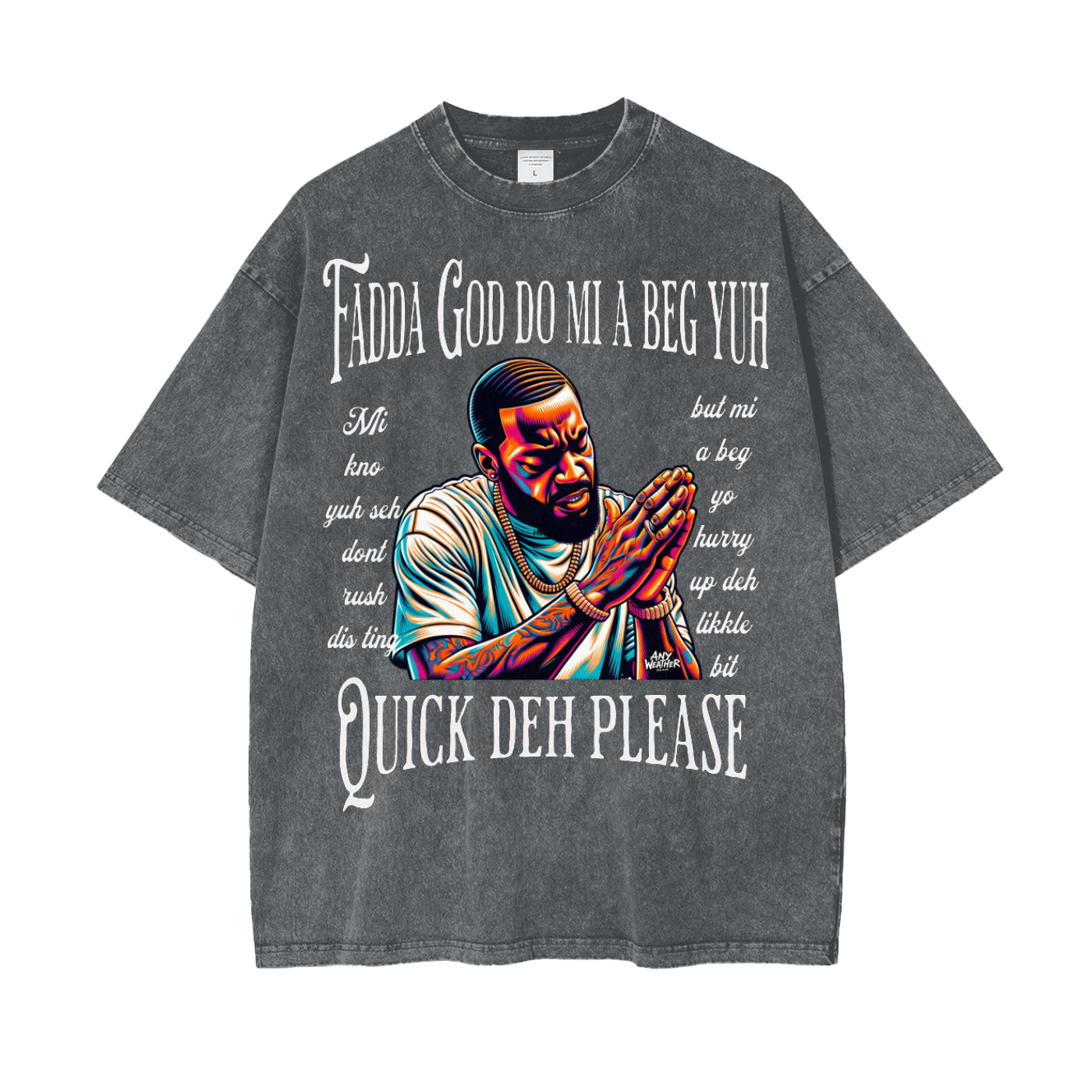 Step out in a tee that talks for you — the Fadda God Mi a Beg Yuh Oversize Snow Washed T-Shirt. Designed in true Anyweather DNA: bold, cultural, faith-driven, and unapologetic.